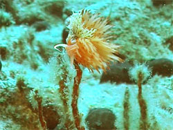 Usually used as the morning dive during a day trip. Access to a breathtaking wall is via a narrow channel that drops from 8 mtrs to 15 mtrs. The wall drops directly beneath you to approx 40 mtrs. On the wall and lurking in the holes and cracks can be found sea hares, spiny lobster, shrimps, crabs and moray eels. As you ascend you willget to the top of the wall at around 20 mtrs and be rewarded with a large area of fantastic rock formations containing an abundance of marine life. Sea horses and turtles can be found in the shallower areas of this dive. |